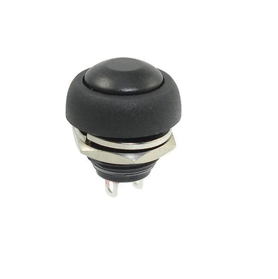 O Botão 12mm à prova d'água sem trava é um interruptor normalmente aberto pulsador resistente à água (não deve ser submergido). Possui um mecanismo de recuperação que permite o acionamento do circuito somente mediante a pressão do usuário, desligando o circuito logo após a liberação do botão.