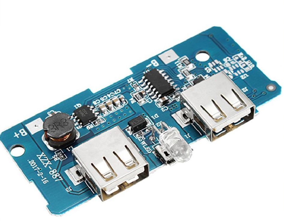 O Módulo Carregador Dupla USB para bateria 18650 é ideal no controle de carga de baterias de lítio de 3.7V com duas saídas USB, pode conectar até dois dispositivos 5V com capacidade de carregamento de até 2A pela porta USB. Possui um conector micro USB para a conexão de uma fonte 5V 2A e pinos B+ e B- para conexão da bateria.