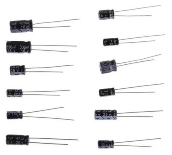 Kit com 120 peças Capacitor Eletrolítico 470uF 16v - 12 valores